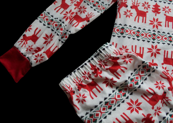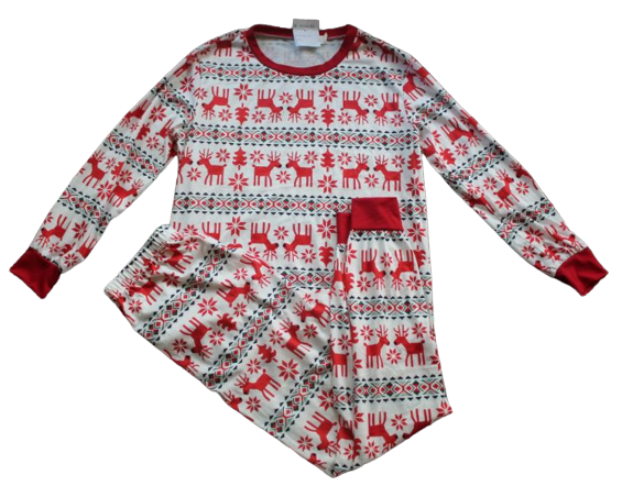 Férfi belebújós pizsama szett, a nadrág gumis derekú.