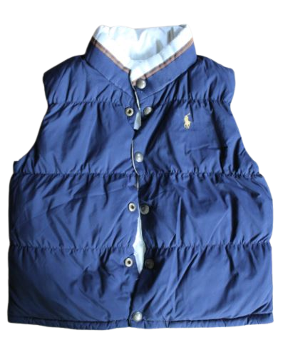 Fiú ki-be fordítható Ralph Lauren mellény, patentos, zsebes, tollas töltetű.