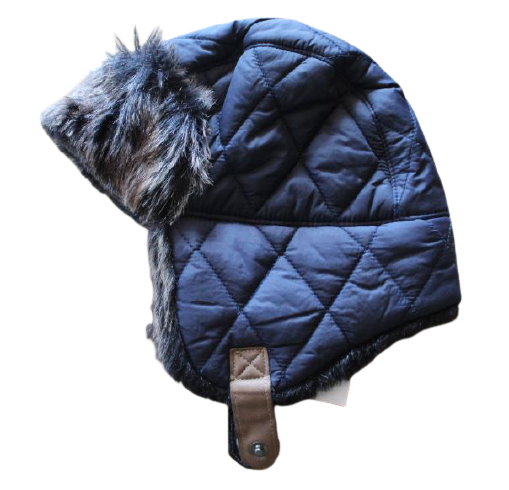 Fiú téli sapka, alul patentos. Kívül orkános, belül szőrmés anyagból.