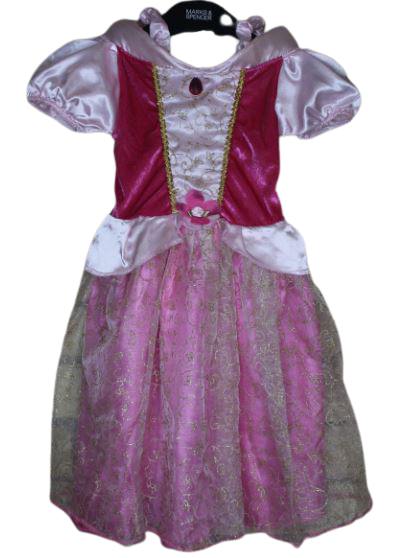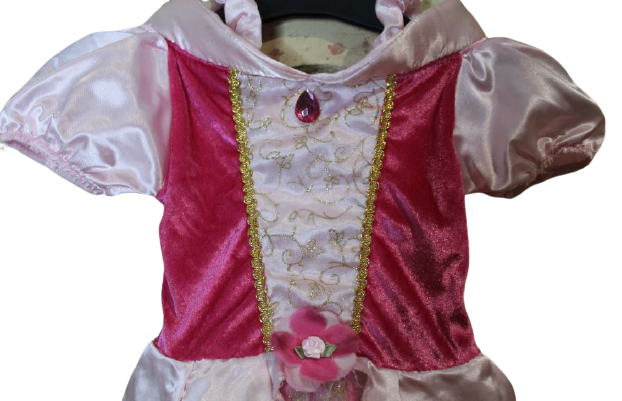 Hercegnő jelmez hátul gumis derékkal és tépőzárral. (apróbb szálhúzódások vannak rajta, elején az aranyozás picit kopott)
