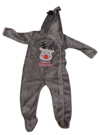 Karácsonyi kezeslábas szarvasos mintával, elől végig patentos, puha anyagból.