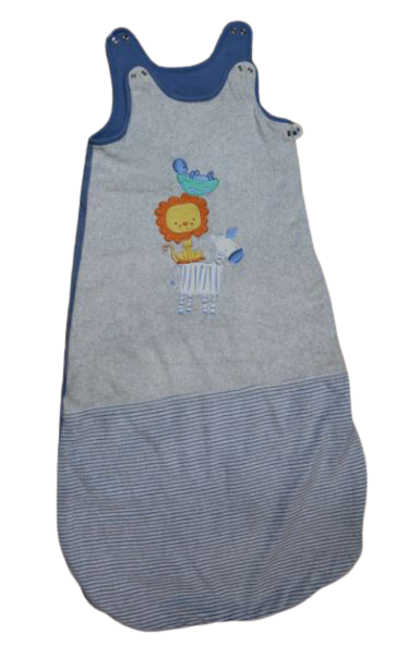 Kisfiú plüssös anyagú hálózsák, oldalán zippzáras.