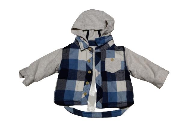 Kisfiú kabát, kapucnis, gombos, béléses. 56-62-es