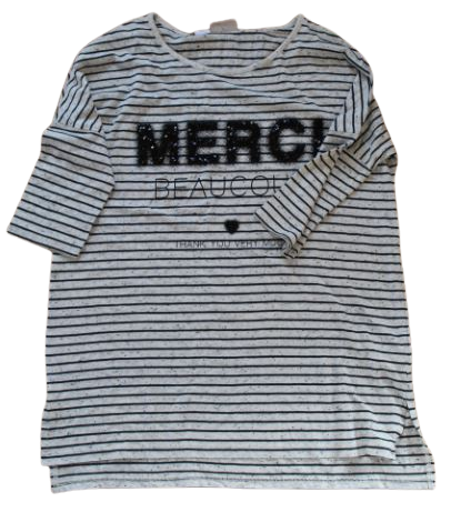 3/4-es ujjú lányka felső, fekete-fehér csíkos.,