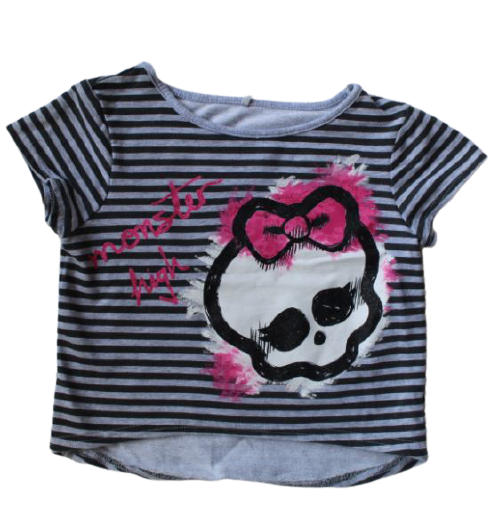 Lány rövidujjú felső, rövidített, koponyás matricával.