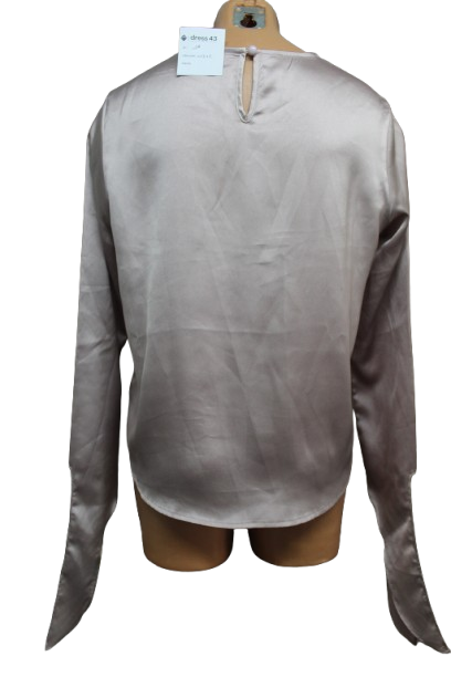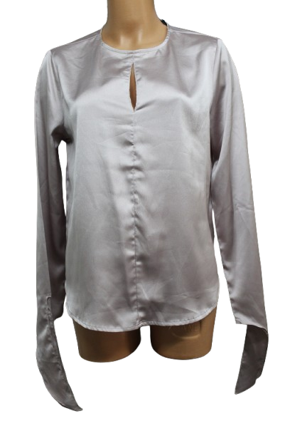 Hosszúujjú blúz, hátul gombos, ujja megköthető.