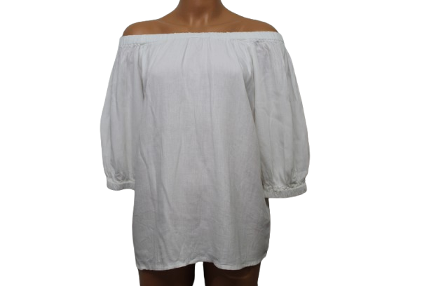 Gumis nyakú, vagy vállú felső, könyékig érő ujjal. Kellemes nyári viselet.