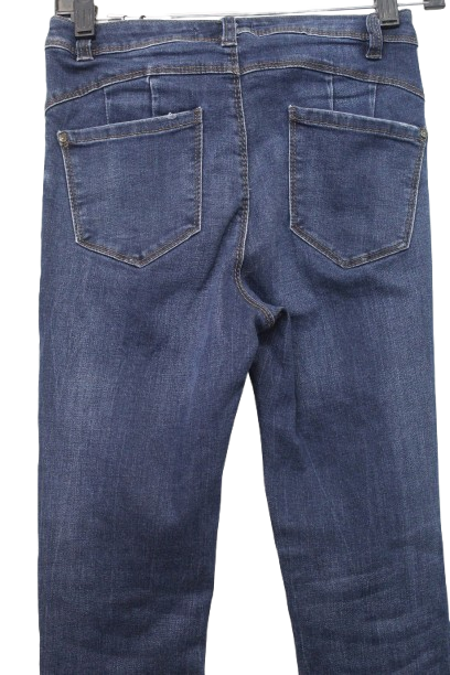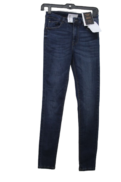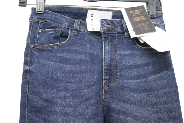 Női rugalmas anyagú, szűk fazonú farmernadrág.