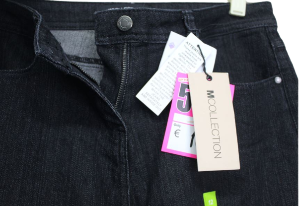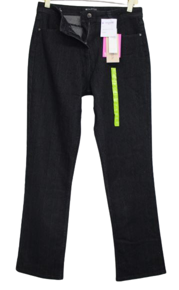 Női egyenesszárú, elasztikus farmernadrág.