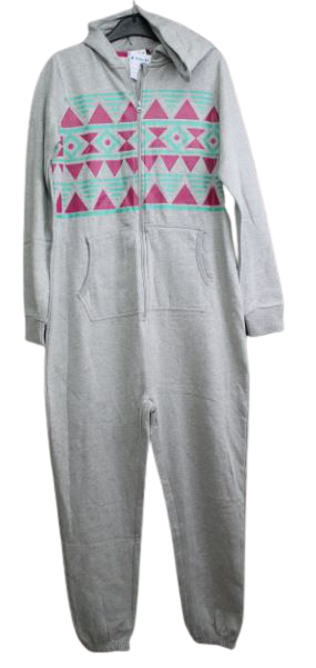 Női egyrészes téli pizsama, elején zipzáras, kapucnis, zsebes. .