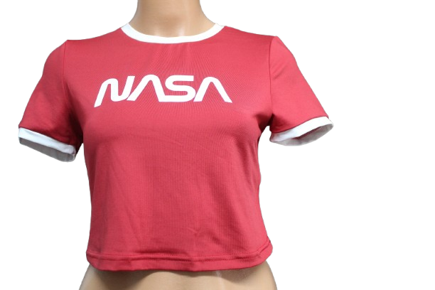 Nasa feliratú, rövid derekú póló.