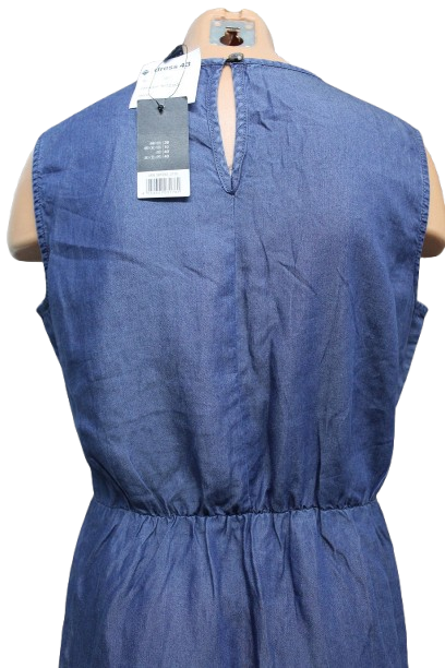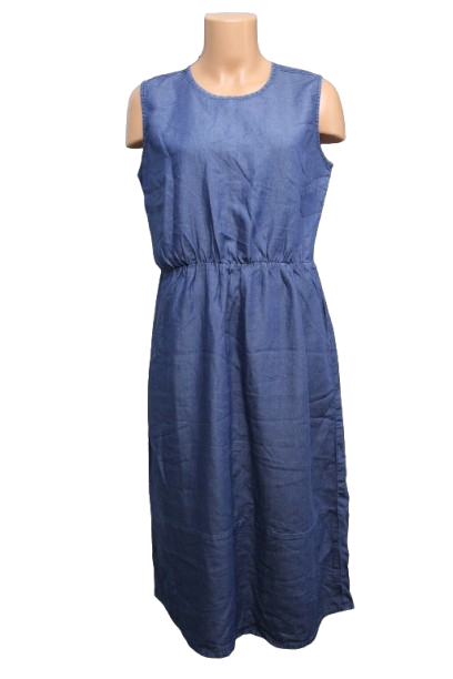 Vékony farmer anyagú egész ruha, gumis derékkal.