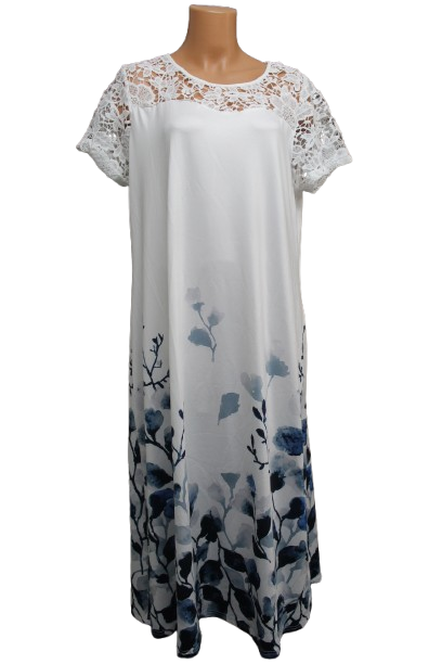 Nagyon szép belebújós ruha, csipkebetéttel a felső részén.