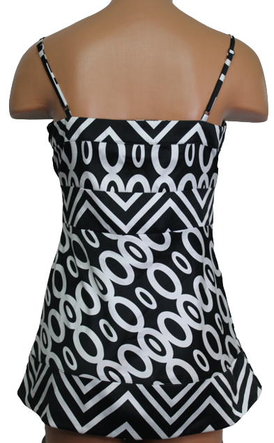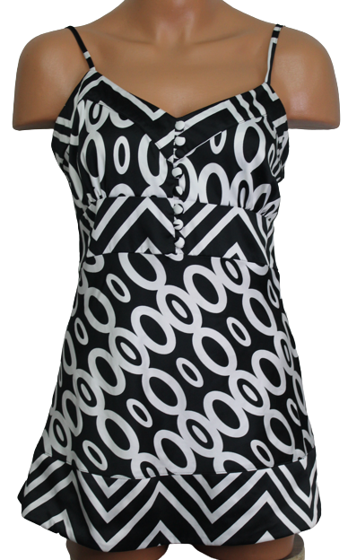 Női spagetti pántos felső, oldalán végig zipzáras, elején díszgombokkal, nem rugalmas anyagú